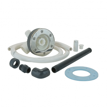 Bocchetta idromassaggio in ABS con getto orientabile e regolabile di miscelazione aria/acqua e flangia o copriflangia in acciaio inox A4 sia per piscine interrate che fuoriterra.