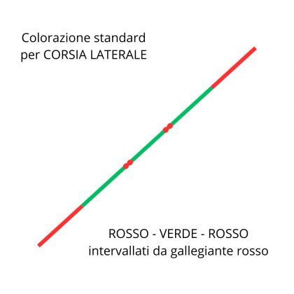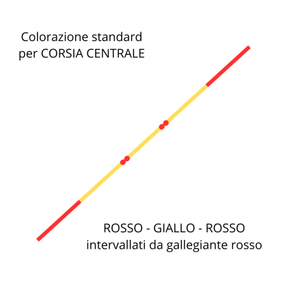 - corde centrali: rosso, giallo rosso, intervallati da galleggiante rosso