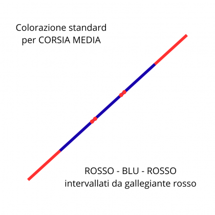 - corde medie: rosso, blu, rosso, intervallati da galleggiante rosso