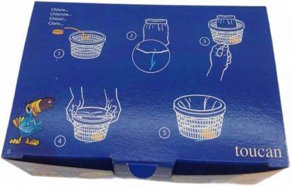 Net'Skim è un pre-filtro universale usa e getta (simile a una calza elastica) progettato per essere inserito all'interno del cestello dello skimmer della piscina.