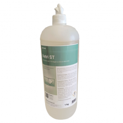 VETRI ST: Detergente ad alta schiuma specifico per il lavaggio dei vetri con sistema a stecca. Il prodotto consente un ottimo scivolamento della gomma della stecca sul vetro.