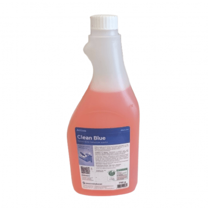 CLEAN BLUE: Pulitore rapido pronto all'uso per la pulizia giornaliera di vetri, specchi, scrivanie e tastiere. Rimuove macchie di unto, di inchiostro e di impronte senza lasciare residuo. Non necessita di risciacquo.