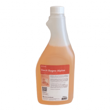 DECIT BAGNO ALPINE: Detergente a base di acido citrico per lapulizia e la deodorazione giornaliera o di routine dei sanitari. Rimuove rapidamente le tracce lasciate dall'acqua e dai saponi.