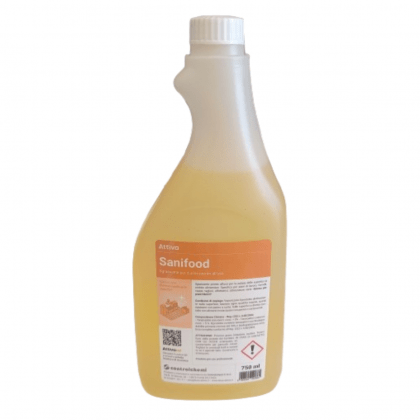SANIFOOD: Sgrassante pronto all'uso per la pulizia delle superfici in ambito alimentare. Specifico per piani di lavoro, fornelli, cappe, taglieri, affettatrici, attrezzature varie. *Idoneo per piani HACCP*