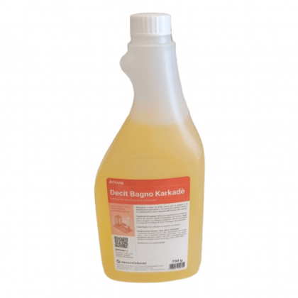 DECIT BAGNO KARKADE': Detergente a base di acido citrico per la pulizia e la deodorazione giornaliera o di routine dei sanitari. Rimuove rapidamente le tracce lasciate dall'acqua e dai saponi.