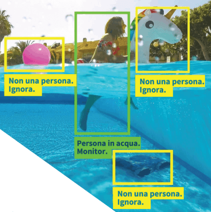 Il dispositivo è in grado di identificare autonomamente diverse fasi di rischio: Presenza e Approccio: Rileva quando qualcuno si avvicina all'area della piscina, inviando una notifica preventiva. Ingresso in Acqua: Identifica istantaneamente il momento in cui una persona entra in piscina. Rilevamento Annegamento: Monitora i nuotatori e utilizza algoritmi addestrati su milioni di video per riconoscere i segni premonitori di un annegamento in tempo reale. Caratteristiche Tecniche Principali Doppia Telecamera: È dotato di una telecamera sopra il livello dell'acqua (per monitorare i dintorni) e una subacquea (per tracciare i movimenti di chi nuota). Triplo Sistema di Allarme: In caso di pericolo, l'allarme risuona contemporaneamente: Sulla colonnina a bordo piscina. Su un ricevitore interno all'abitazione collegato alla presa elettrica. Tramite notifiche push sullo smartphone (con invio di immagini del pericolo). Monitoraggio 24/7: Funziona costantemente, anche quando la piscina non è in uso, garantendo protezione continua contro ingressi non autorizzati. Riduzione Falsi Allarmi: Grazie all'AI integrata, il sistema è in grado di distinguere tra un bagnante che nuota normalmente e una situazione di reale sofferenza, riducendo le segnalazioni errate comuni in altri sensori.